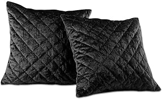 Chezmoi Collection Nina プレミアムヘビーベルベットモダンダイヤモンドパターン装飾正方形スローピロークッションカバー ブラック 18インチ x 18インチ 2個セット