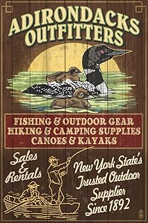 The Adirondacks、ニューヨーク州 – Loon Vintage Sign 36 x 54 Giclee Print LANT-41363-36x54