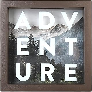 Haven Home DÃcor 木製 6x6 アドベンチャーファンドガラスフロントシャドウボックスバンク、ブラウン、マルチ