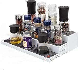 Seville Classics Bamboo Premium Wood 3-Tier Step Shelf Spice & Seasoning Storage Rack Organizer for Kitchen, Cabinet, Countertop, Pantry, Bathroom, Salon, Adjustable Expandable 8.5"-15" W Single Visit the Seville Classics Store 8,546 ratings Color: Bamboo Size: Adjustable Expandable 8.5" - 15" W Single Adjustable Expandable 8.5" - 15" W Single RoyalHouse Bamboo Expandable Spice Rack Organizer, 3-Tier Adjustable Kitchen Cabinet, Countertop Display Shelf, Space Organizer for Kitchen and Bathroom Visit the RoyalHouse Store 1,253 ratings Amazon's Choice in Spice Racks by RoyalHouse $2699 FREE Returns About this item %100 Bamboo