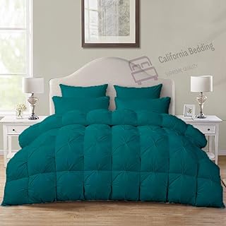 オールシーズン – 高級ピンチプリーツ ピンタック エジプト綿 クイーン 88 x 92 サイズ 1ピース ダウン代替キルト掛け布団 4つのコーナータブ付き 500 GSM マイクロファイバーフィル ピンタックティール 無地