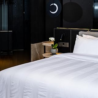 JOOSING 掛け布団カバーセット クイーンサイズ エジプト綿 パーケール ホワイト ストライプ コットン シアサッカー 3点 200スレッドカウント