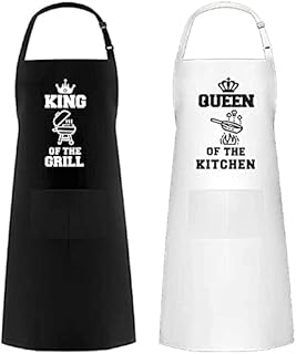 Snogisa Mr & Mrs エプロン 面白いクッキングよだれかけ キッチンエプロンセット カップルへのウェディングギフト (King of the Grill & Queen of the kitghen)