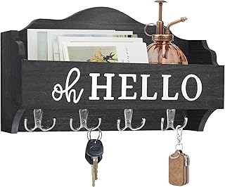 キーホルダー 壁 メール キーホルダー 木製 吊り下げ式 玄関 郵便受け 壁装飾 ダブルフック5個 黒板 (素朴)