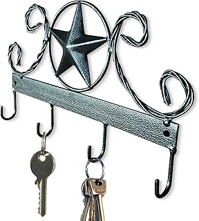 ブラック テキサス カントリー ウェスタン キーホルダー – 素朴な壁飾りキーハンガー 自宅用 ヴィンテージメタルキーハンガー 壁用 星型キーラックフック 壁ホルダー 鍵用複数のフック (ブラック)