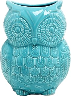 MyGift Large Owl Design Ceramic Cooking Utensil Holder, Kitchen Storage Crock, Aqua Blue
