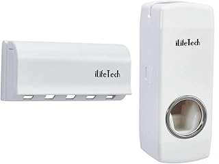 iLifeTech 歯磨き粉ディスペンサー 歯ブラシ&カミソリホルダー 多機能 壁取り付け式 バスルームアクセサリーキット 防塵カバー付き