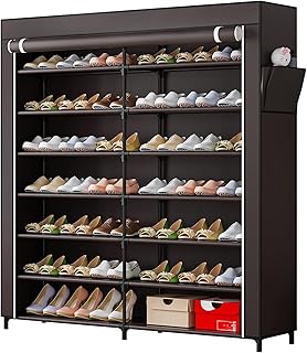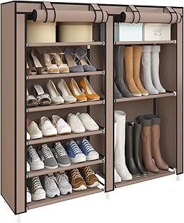 UDEAR ポータブルシューズラック 7段 自立式シューズオーガナイザー 防塵カバー付き ダークブラウン