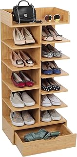 TQVAI 6段木製靴ラック オーガナイザー 引き出し付き 自立式 玄関 靴収納タワー 竹色