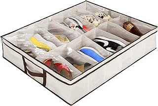 ZizHome アンダーベッド シューズオーガナイザー 子供と大人用 (12足) - ベッドの下 靴 クローゼット 収納ソリューション - 通気性のある素材製 前面にジッパー開閉 - 簡単組み立て