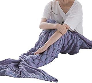 tanggo マーメイド ブランケット 大人 着る毛布 人魚 ニット ひざ掛け 可愛い 人魚毛布 コスチューム 尾びれ 冷房対策 柔らかい 防寒 暖かい 大判 ギフト お昼寝 195×90cm (パープル)