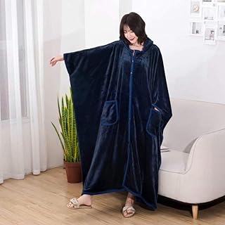 caffmo掛け毛布 タオルケット 着る毛布 ひざ掛け ブランケット ポンチョ 多機能 厚手 大判 暖かい ふわふわ 冷房対策 シングルサイズ(65cmx170cm) (紺青)