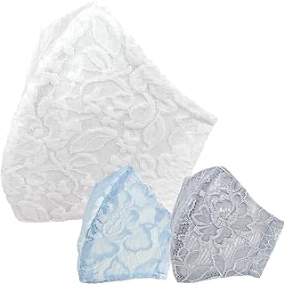 アトリエフジタ 日本製 洗える マスク レース 結婚式 ブライダル パーティ フォーマル 女性用 Mサイズ バラエティパック(白・スモーキーブルー・グレー)