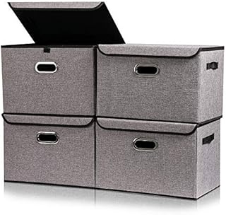 Senbowe 大型収納キューブ [4個パック] リネン生地 折りたたみ式 収納キューブ オーガナイザー バスケット 蓋付き ハンドル付き 取り外し可能な仕切り 自宅 オフィス 保育園 クローゼット用 - (16.5 x 11.8 x 9.8インチ)