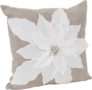 Fennco Styles ホリデーユニーク 3D ポインセチア クリスマス装飾スローピロー 17'x17' Throw Pillow ホワイト