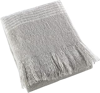 Fennco Styles クラシックフェイクモヘアストライプ 50 x 60インチ スローブランケット - グレースローブランケット カウチ、リビングルーム、ベッドルームの装飾に