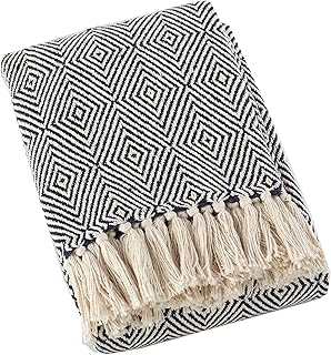 Fennco Styles Sevan Collection ソフトコットン100%ダイヤモンド織りスローブランケット 50 x 60インチ (ネイビーブルー)