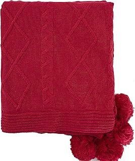 Fennco Styles 高級フェイクファー ケーブルニット リバーシブル ポンポン 心地良いスローブランケット 50インチ x 60インチ 50x60 レッド