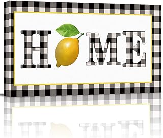 キャンバスウォールアート ホームインテリア 写真プリント ポスター 油絵 フレーム ホームフレッシュ レモン ブラック ホワイト バッファロー 格子縞 アートワーク 寝室 リビングルーム バスルーム オフィス キッチン デコレーション 16x32インチ