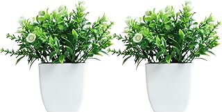 FEILANDUO ミニ鉢植え人工植物 プラスチックフェイクグリーン植物 ホームインテリア オフィス デスク シャワールーム装飾 ホワイト 2個セット