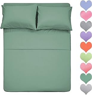 Homelike Collection 400スレッドカウント コットン ツインサイズ シーツ3点セット - 長繊維綿100%シーツセット ソフトコットンベッドシーツセット 深いポケット付き 16インチまでフィット フルサイズ グリーン