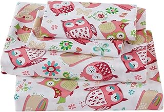 リネン プラス フルサイズ 4枚 シーツセット 女の子用 フクロウ フラワー ピンク ホワイト ベージュ グリーン