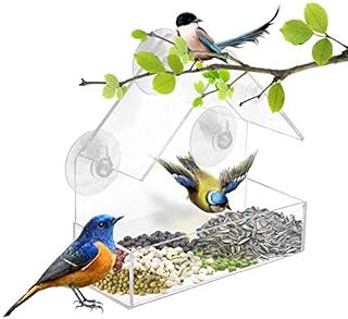 LQKYWNA 鳥の餌やり器 鳥小物 取り外し可能 プラスチック 透明 家の窓 クリエイティブ 吸盤3個
