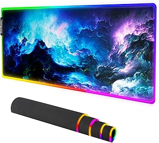 スペースゲーミングマウスパッド | 拡張RGBゲーミングマウスマット | LEDアニメマウスパッド | - 防水表面付き大型マウスパッド - 滑り止めベース - 10色 & 4モード - 31.5 x 11.8 x 0.15インチ