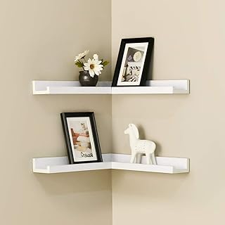 WELLAND モダン 壁掛けコーナーシェルフ コーナーディスプレイ フローティングシェルフ 寝室 オフィス ホームデコ アクセント 2個セット 11.8' ホワイト WSV111-201.