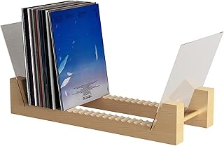 WELLAND ビニールレコードストレージホルダー 最大50枚のアルバム 7または12インチ 無垢材スタンド 透明アクリルシート付き シングルとLPをスタイリッシュかつポータブルなストレージラックにディスプレイ可能