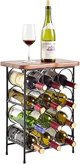 WELLAND Laura 12ボトルワインラック ソリッド木製テーブルトップ メタル&木製 フリースタンディングワインストレージラック 素朴なパインウッド