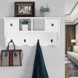 WELLAND Haley 収納 壁棚 フック付き 吊り下げ式 玄関 壁掛け コートラック 収納キャビネット ホワイト