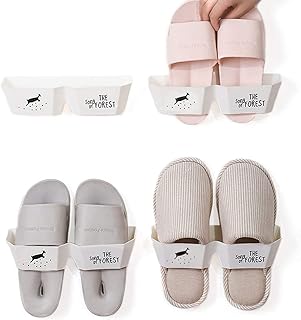 Umora 靴ラック 壁掛けシューズ スリッパラック 2足収納でき シューズラック 省スペース 玄関 トイレ スリッパ収納 強力粘着テープ 4個セット