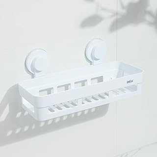 Bathluxシャンプーラック浴室ラック、 吸盤シャンプー置きプラスチック真空吸着壁掛け収納ラック、石鹸置きストロングスポンジホルダー、バスルーム、バスタブ、キッチンシンクに最適、穴あけなし、取り外し可能