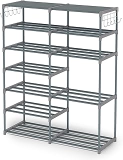 Tribesigns 靴ラック 靴タワー 靴収納オーガナイザー ユニット 玄関棚 積み重ね可能 キャビネット 24~30ペア 7段 丈夫な金属製靴ラック ブーツオーガナイザー (グレー)