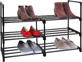 DazHom 3段シューズラック 靴収納オーガナイザー 金属製 クローゼット用 積み重ね可能 靴タワーラック 省スペースシェルフ 丈夫 12~15足収納 リビングルーム 玄関 廊下 ブラック