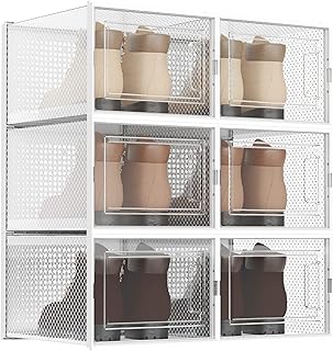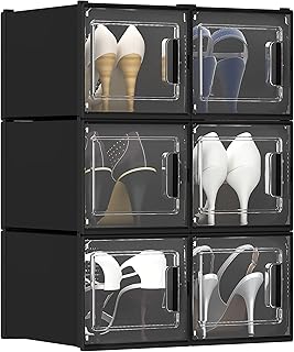 [6パック]靴箱 積み重ね可能 靴収納オーガナイザー ハイトップスニーカー用 米国サイズ14 & レディースハイヒールシューズに最適 折りたたみ式プラスチックシューズディスプレイコンテナ エントリー&クローゼット用 XL