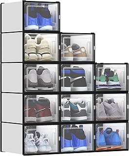 12パック クリアシューズ収納ボックス 積み重ね可能 シューズボックス 収納コンテナ 折りたたみ式シューズボックス クローゼットオーガナイザー 収納用 スニーカー/ブーツ/おもちゃクローゼット収納容器 整理容器