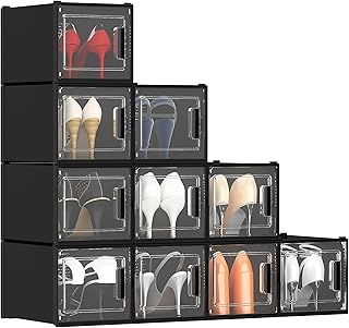 YITAHOME ハイヒールシューズボックス 10個 靴ストレージオーガナイザー 積み重ね可能 クリアシューズストレージボックスラック ブラック