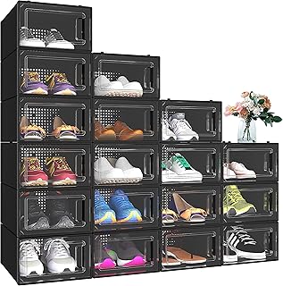 YITAHOME シューズボックス 18個セット 靴収納オーガナイザー 高耐久 積み重ね可能 クリアシューズ収納ボックス ラックコンテナ 引き出し ブラック