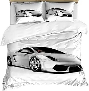 Feelyou レースカー布団カバーセット クイーンサイズ 男の子 男性 スポーツ寝具セット ジッパー開閉 子供 ティーン用 マイクロファイバー肌に優しい掛け布団カバー3Dスピードスポーツカーキルトカバー ホワイト ブラック