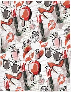 Funy Decor フランネルフリースブランケット 女性エレメントハイヒール 香水口紅サングラス コスメティックコレクション クリップアート ベッドブランケット スーパーソフト 暖かい 赤ちゃん/女の子/男の子/大人/トラベルサイズ 50x80インチ