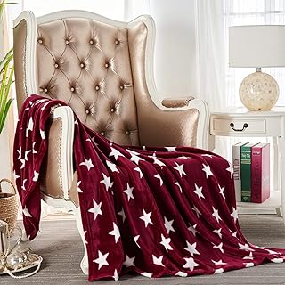 JYK フランネルフリーススローブランケット 50インチx60インチ スーパーソフト フラシ天マイクロファイバー ファジーブランケット 軽量 ふわふわスローブランケット カウチ用 (スロー、レッドスター)