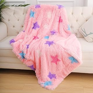 ST. BRIDGE フェイクファー スローブランケット 子供用 スーパーソフト 軽量 シャギースターパターン ファジーブランケット 暖かく快適 ふわふわ 装飾ブランケット 子供 男の子 女の子 50インチx60インチ ピンク