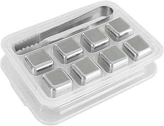 Lovesole ステンレス氷 アイスキューブ 溶けない氷 ウイスキーストーン ウイスキー石 永久氷 繰り返し使用 バー用品 プレゼント[4/8個セット アイストング付き 専用保存ケース付き] (8個セット)