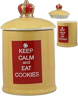 Ebros A Royal Treat Keep Calm And Eat Cookies セラミック製クッキージャー 気密蓋付き 高さ8.5インチ 装飾的なキッチンアクセサリー置物 装飾収納 乾燥食品 調理器具