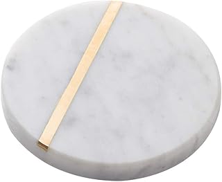 StonePlus 天然大理石カップマット 3点 ドリンクコースター/ジュエリーディスプレイボード ゴールド真鍮インレー コーヒーテーブルパーティー装飾 (ホワイトカララ、ラウンド)