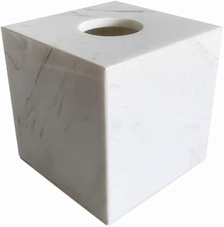 StonePlus ナチュラルスムースマーブルティッシュホルダー ロールペーパーホルダー 取り外し可能なアクリル底付き テーブル/ナイトスタンド/カウンタートップ用 (ホワイト、長さ5.7×幅5.7×高さ5.7インチ)