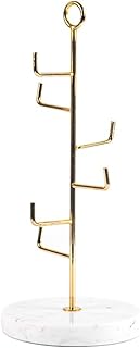 StonePlus 天然大理石ジュエリーホルダー イヤリングネックレスディスプレイスタンド メタルハンギングオーガナイザー ホワイト 4.72Dx11.8H)