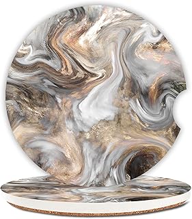 セラミックカップホルダー カーコースター レディース/メンズ 吸収性 ドリンクカップ カーホルダー コースター 指ノッチ付き 2.55インチ 2個パック サンドブラウン ダストライト グレーマーブル